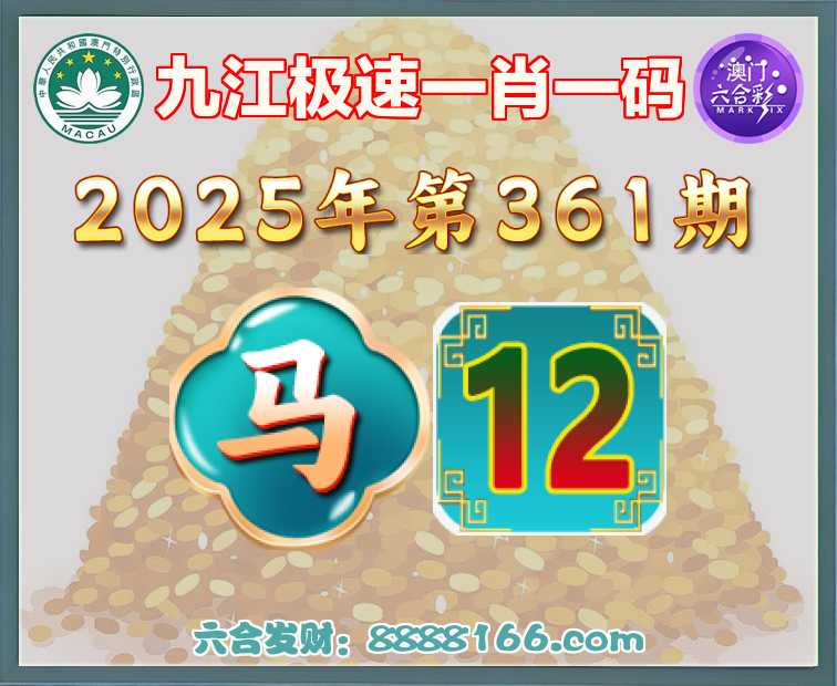 361期: 九江极速 🍄一肖一码🍄【马】【12】开:马24准