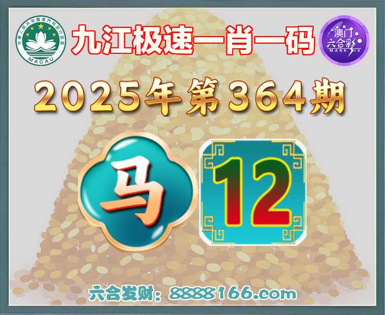 364期: 九江极速 🍄一肖一码🍄【马】【12】开:马12准