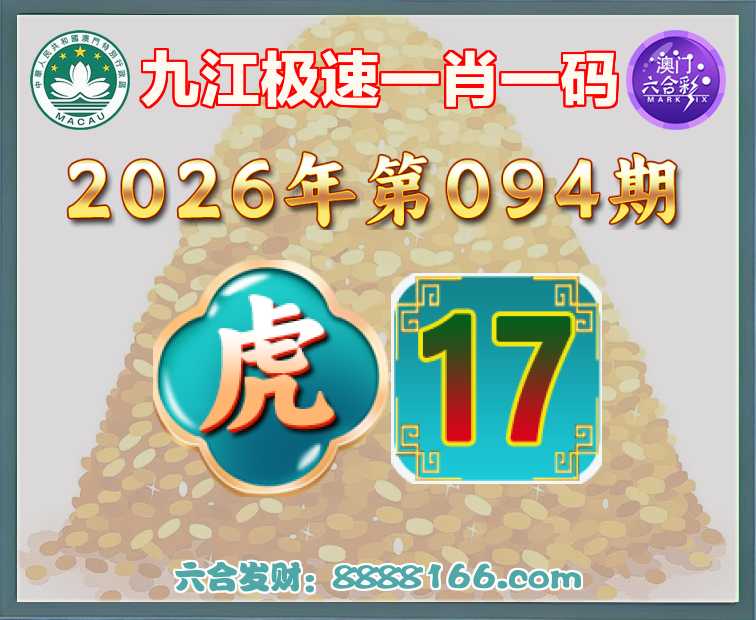 094期: 九江极速 🍄一肖一码🍄【虎】【17】开:虎17准
